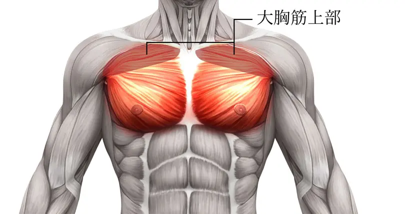 インクラインベンチプレスで鍛えることのできる筋肉は、大胸筋の一番上。